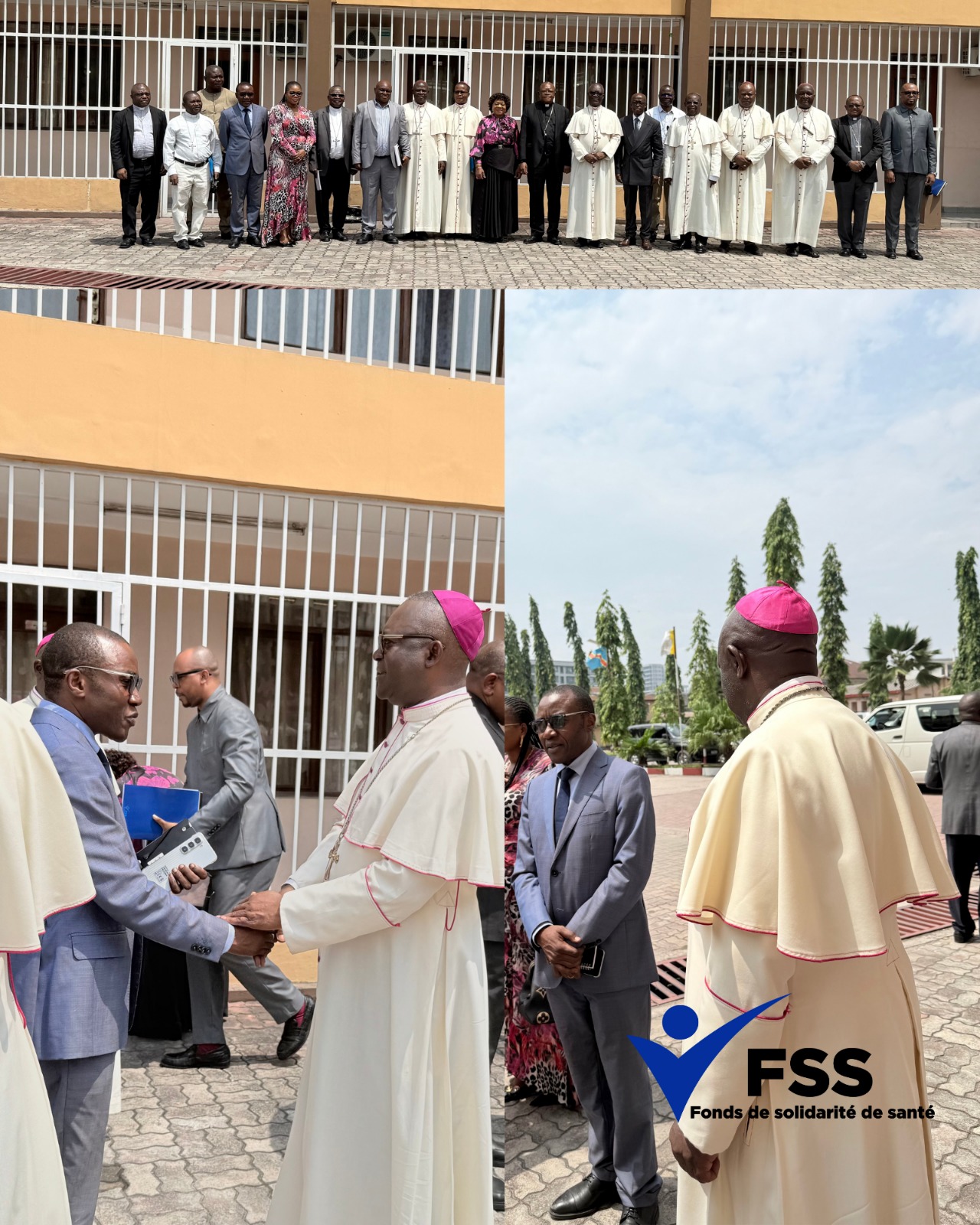 La rencontre a porté sur le renforcement du partenariat entre l’Église et le Gouvernement dans le domaine de la santé. À cette occasion, le Fonds de Solidarité de Santé (FSS), à travers son représentant légal, le Dr Anatole Mangala, mandaté par le Ministre de la Santé Publique, Hygiène et Prévoyance Sociale et représenté par le Secrétaire Général à la Santé, a présenté la Couverture Santé Universelle (CSU) : son contexte, ses objectifs ainsi que les différentes missions des établissements de facilitation.