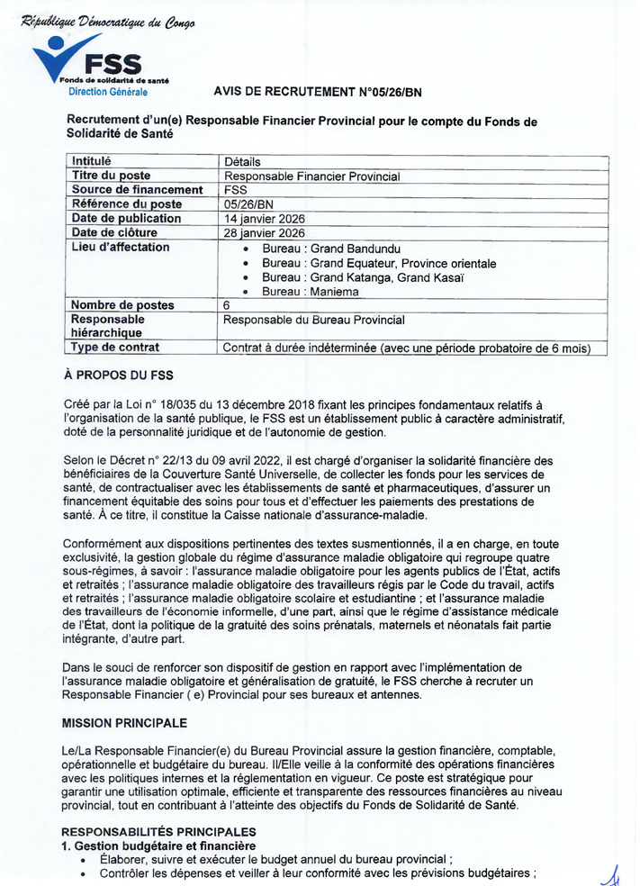 Responsable Financier Provincial – (05/26/BN)