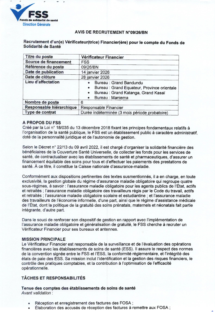 • Vérificateur(trice) Financier(ère) – (Réf. : 09/26/BN)